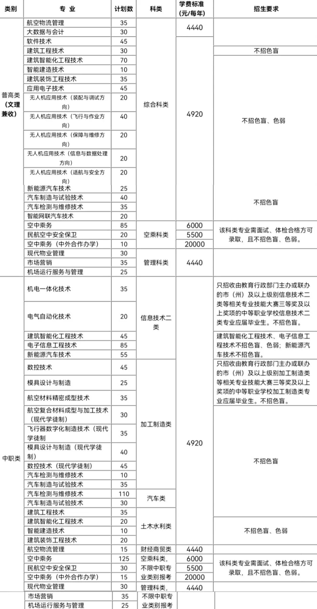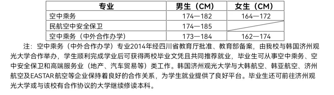(四)机场运行服务与管理专业净身高要求:男生170cm,女生160cm以上。