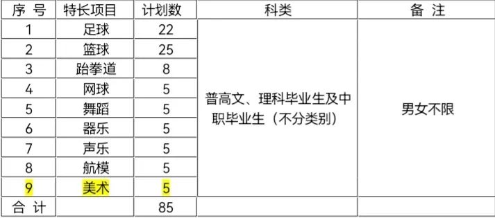 (二)特长类项目及招生计划