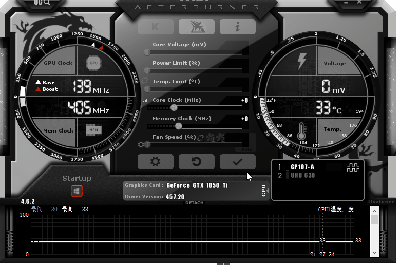 点击Startup那个图标,出现红圈就变示已设置开机启动超频单独设置显卡超频