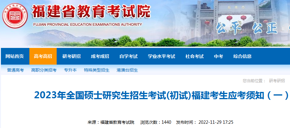 原文标题:2023年全国硕士研究生招生考试(初试)福建考生应考须知(一)