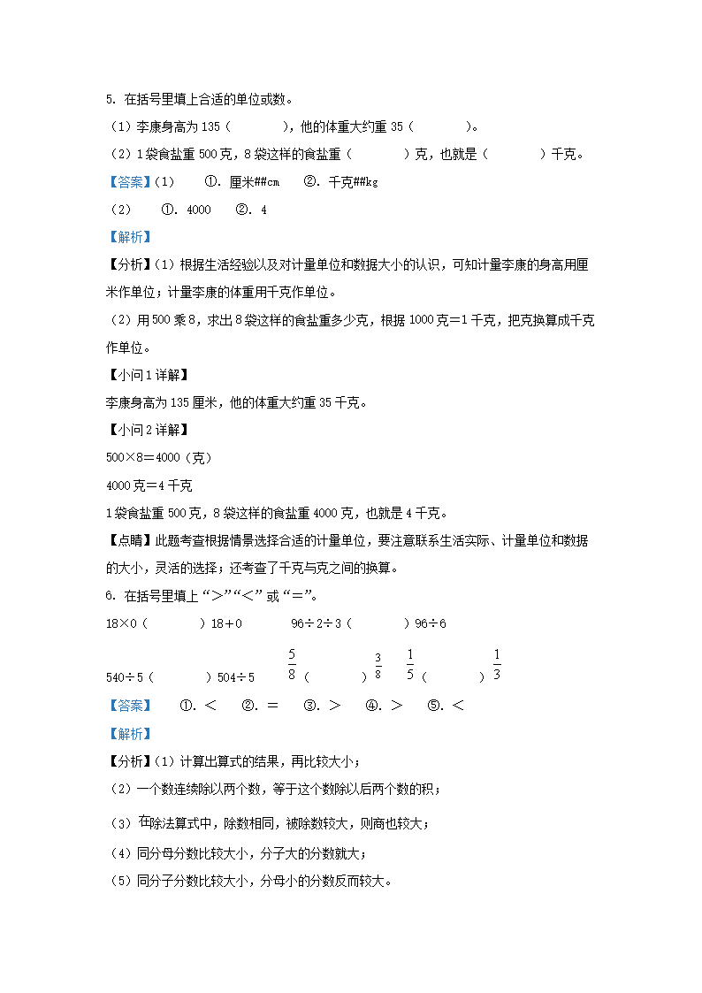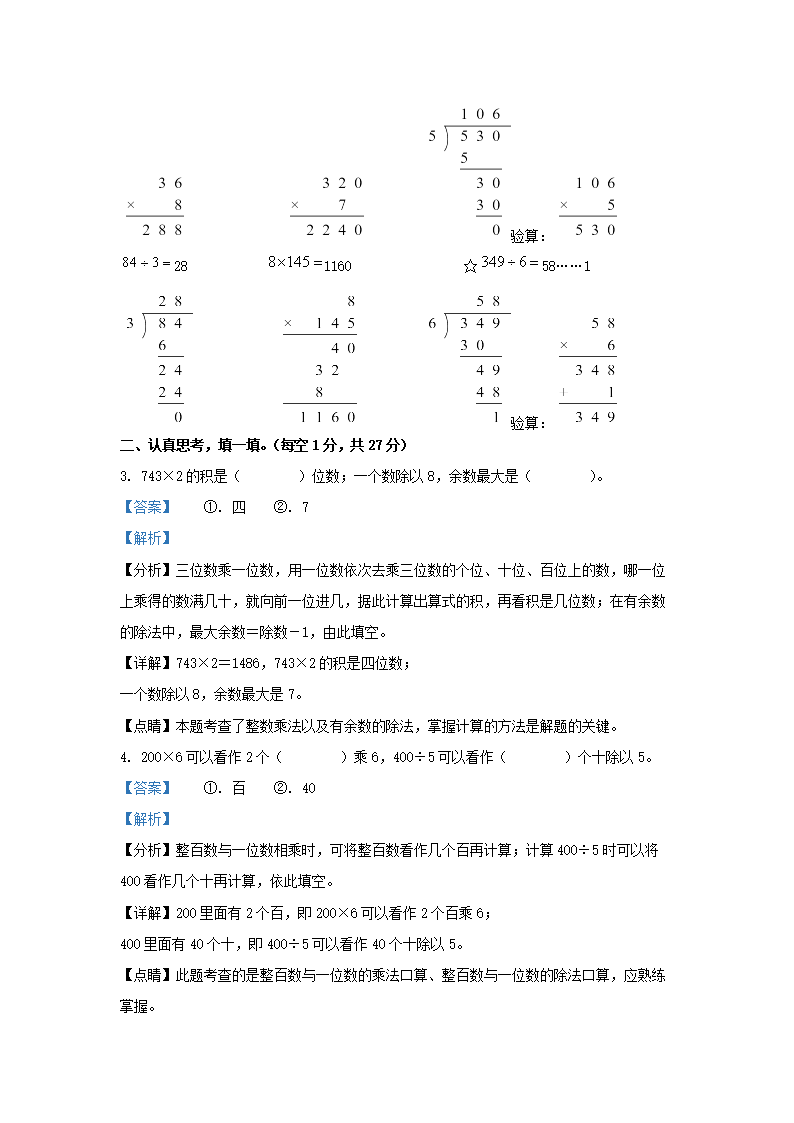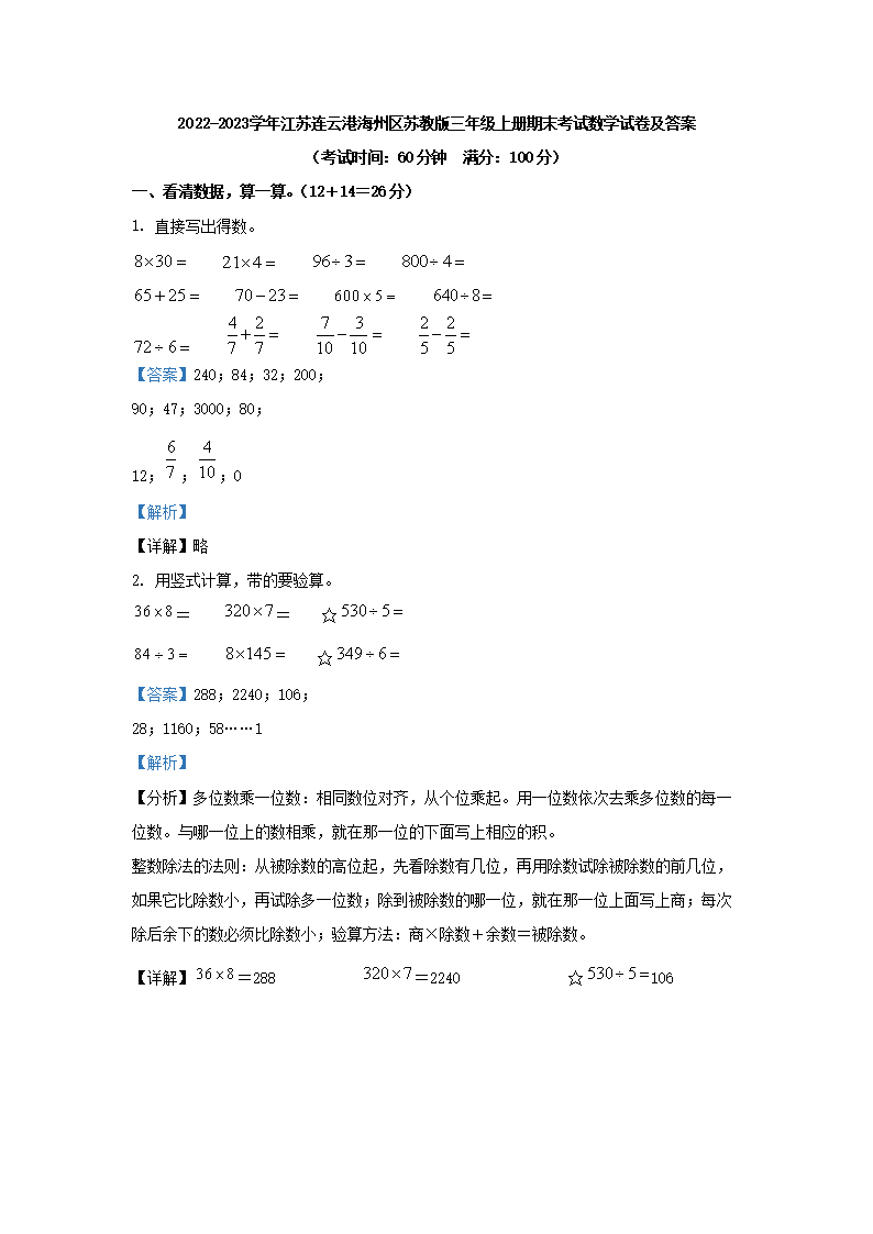 2022-2023学年江苏连云港海州区苏教版三年级上册期末考试数学试卷及答案(Word版)07-22