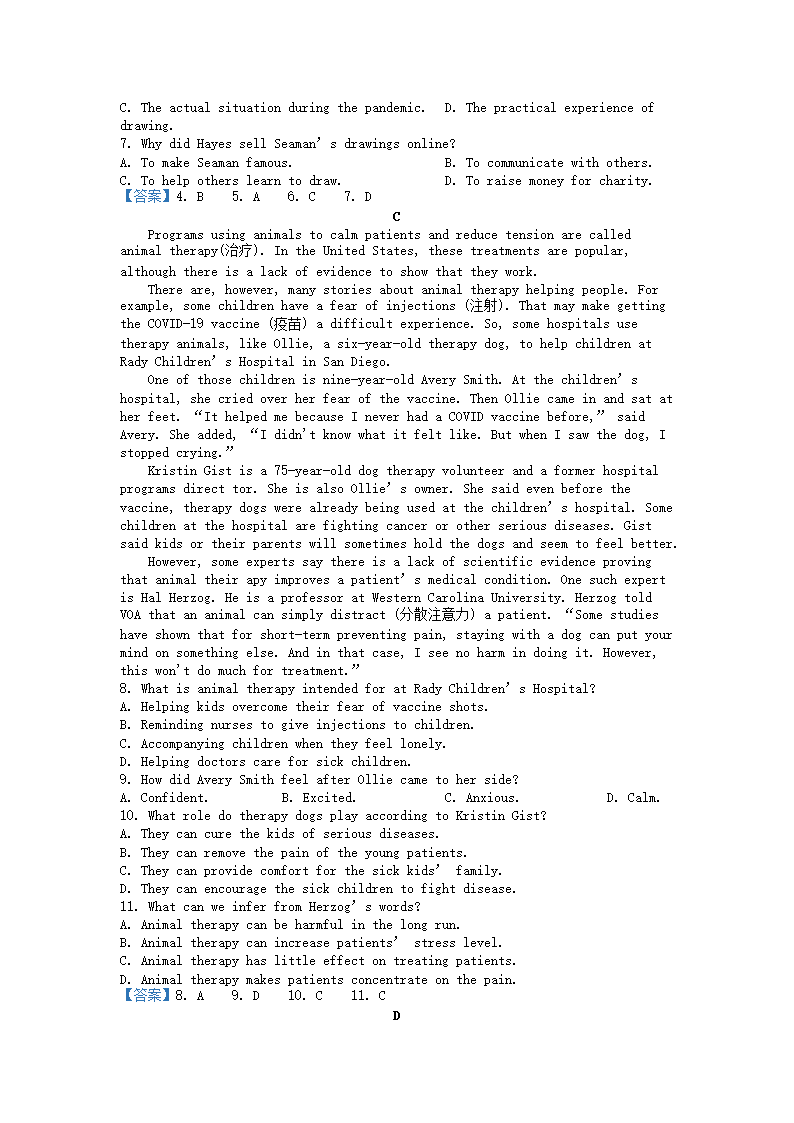 2021-2022年湖北十堰高一英语下学期期末试卷及答案(Word版)09-28