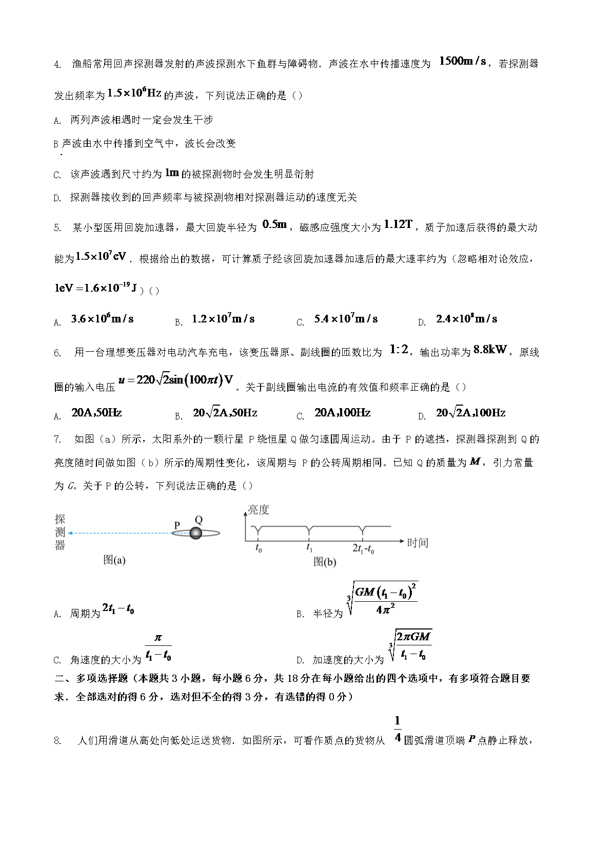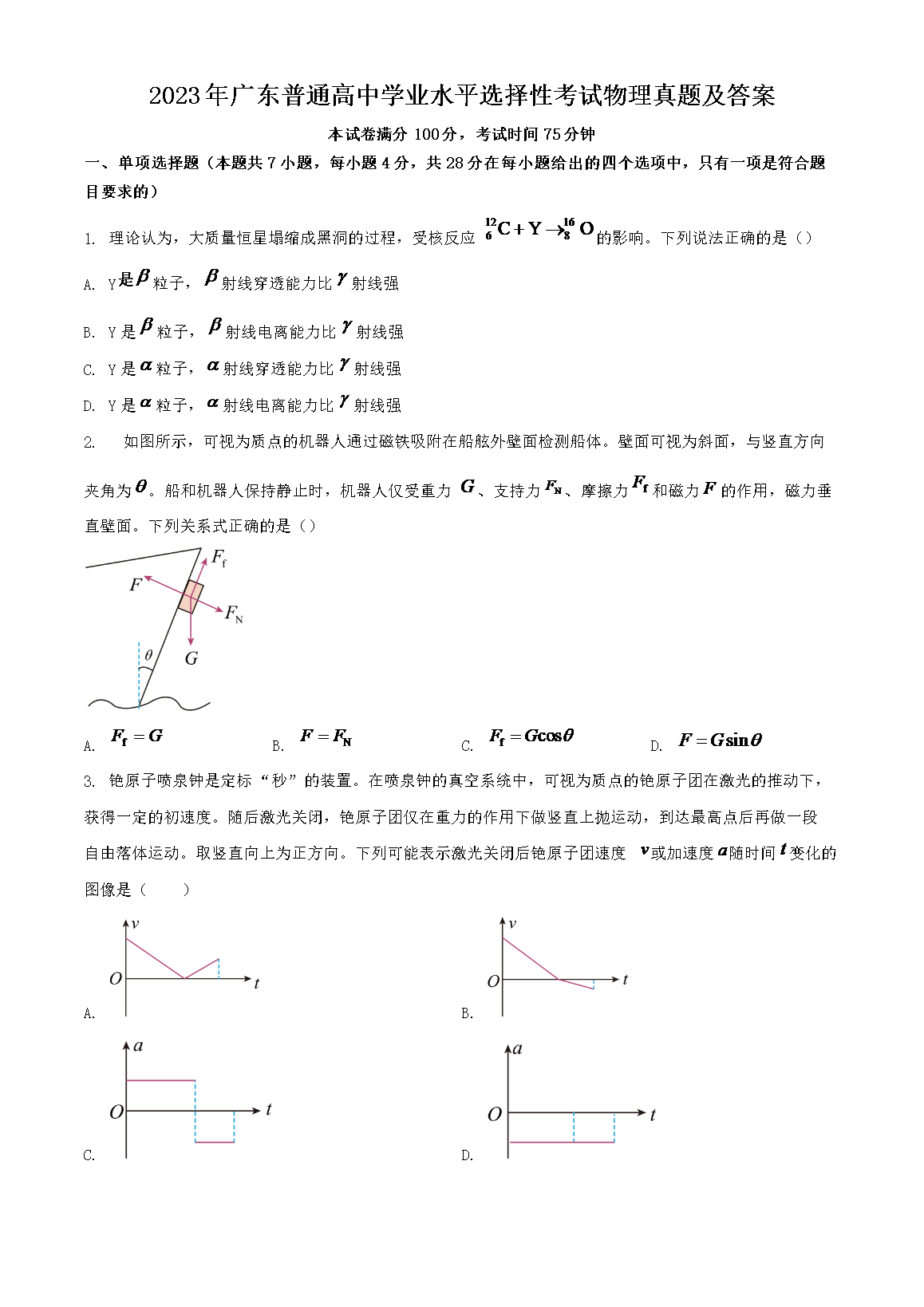 2023年广东普通高中学业水平选择性考试物理真题及答案(Word版)08-16