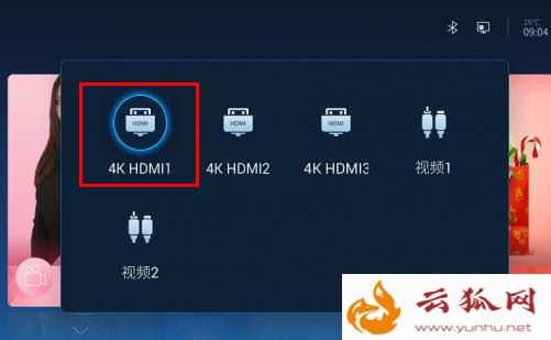 第四步:通过遥控器切换信号源,将信号源切换至高清线所插的那个HDMI接口。