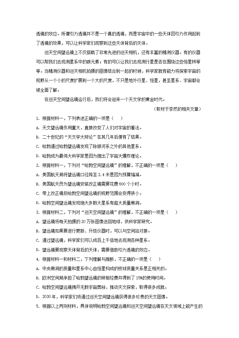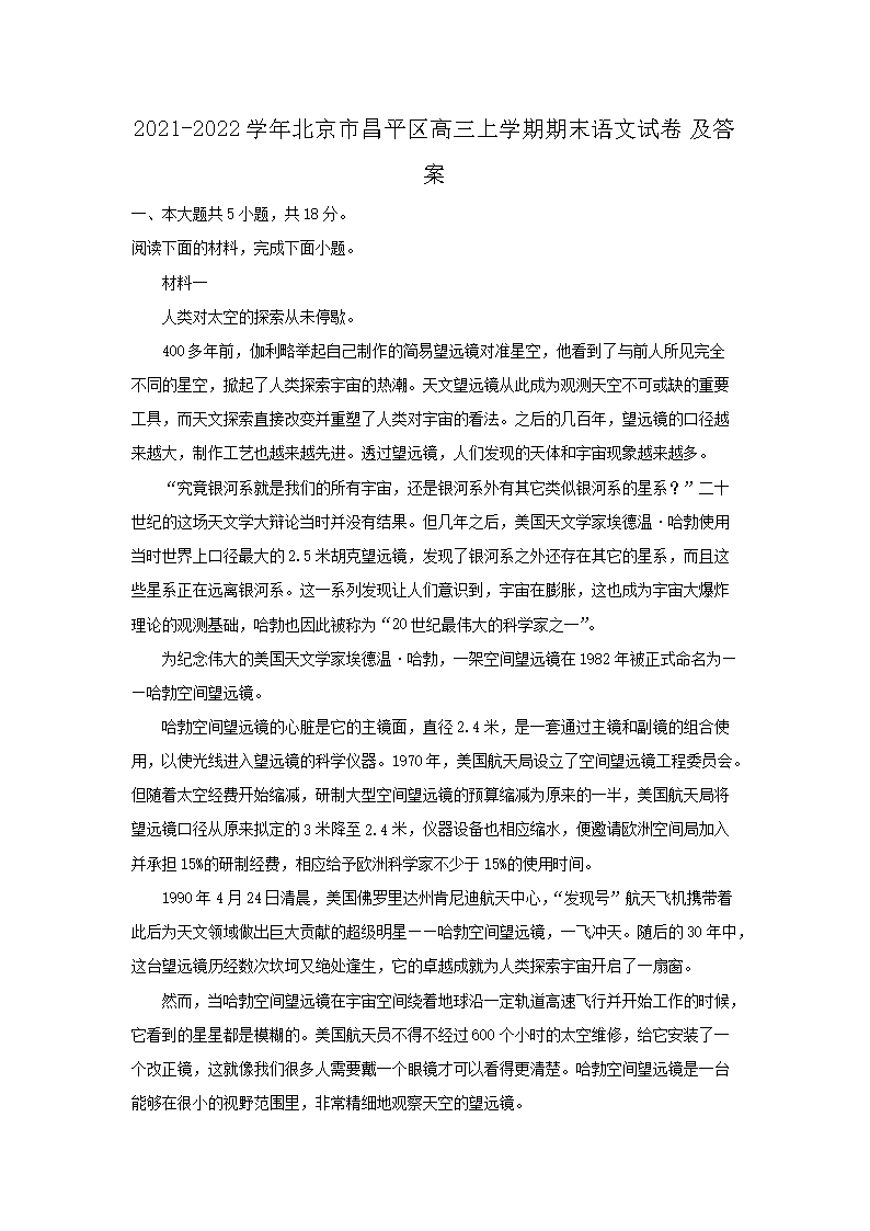2021-2022学年北京市昌平区高三上学期期末语文试卷及答案(Word版)09-21