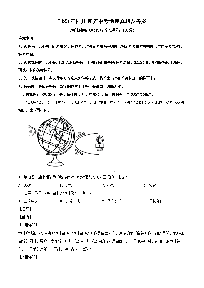 【文档预览】 文档大全网整理发布2023年四川宜宾中考地理真题及答案(Word版),前五页预览如下: