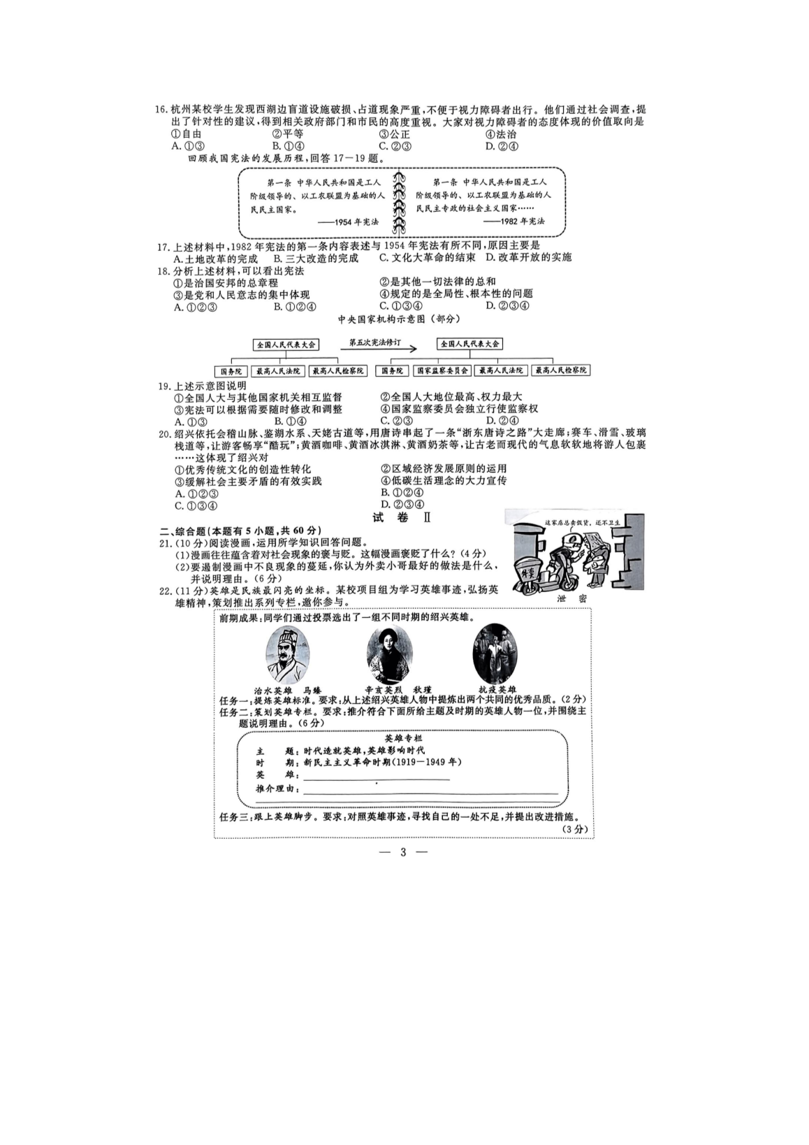 2023年浙江绍兴中考历史与社会.道德与法治真题及答案(图片版)06-20