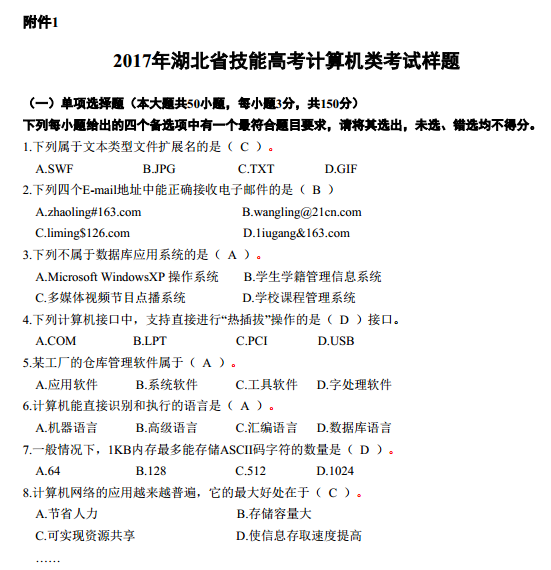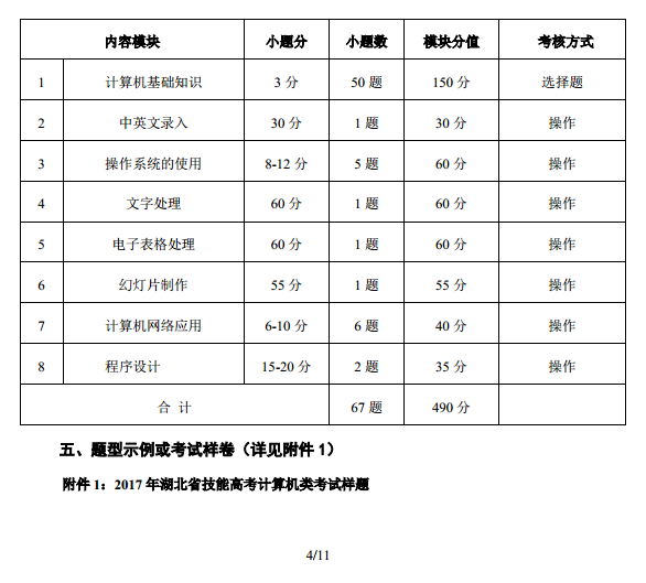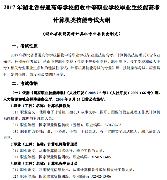 2017年湖北技能高考大纲:计算机类04-23