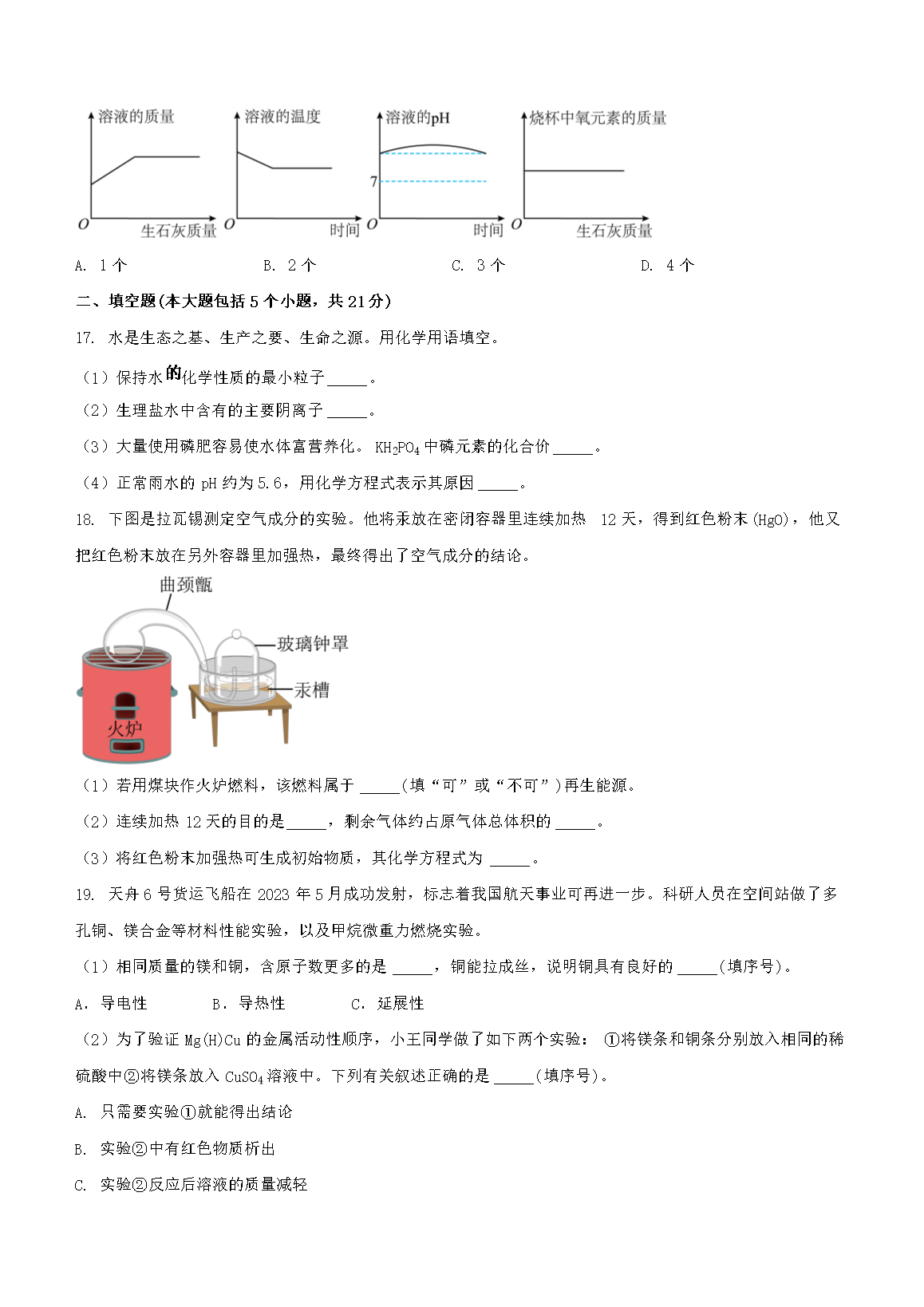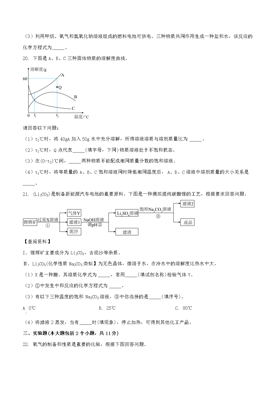 2023年重庆渝中中考化学试题及答案(A卷)(Word版)06-19