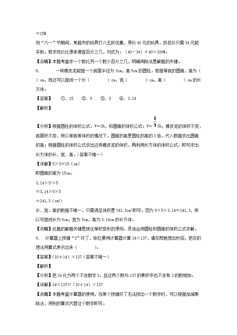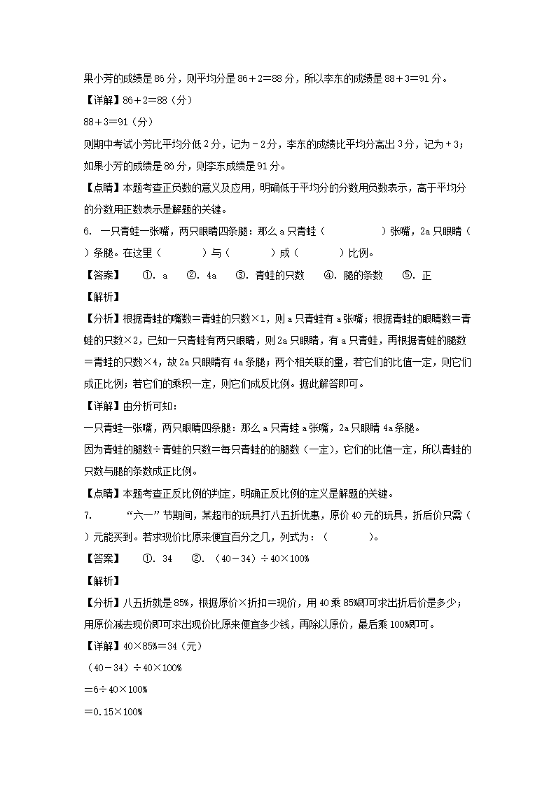 2021-2022年江西赣州市瑞金市六年级上册期末数学试卷及答案(人教版A卷)(Word版)10-11