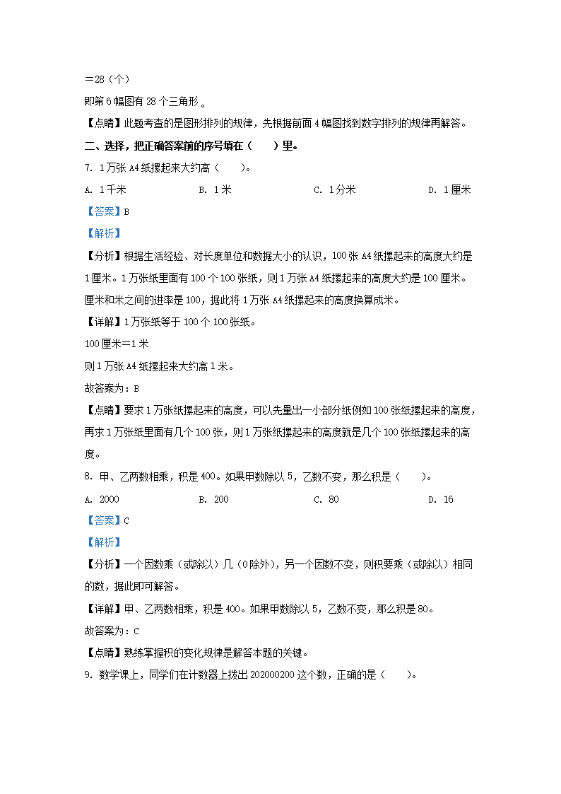2022-2023学年北京通州四年级上学期期末数学真题及答案(Word版)06-26