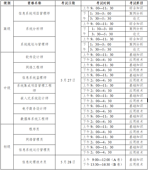 除“信息处理技术员”为上机考试外,其余考试科目答题方式均为笔试。