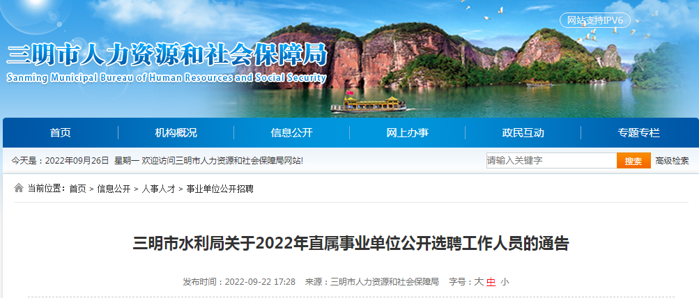 2022年福建省三明市水利局直属事业单位选聘工作人员公告【4人】09-27