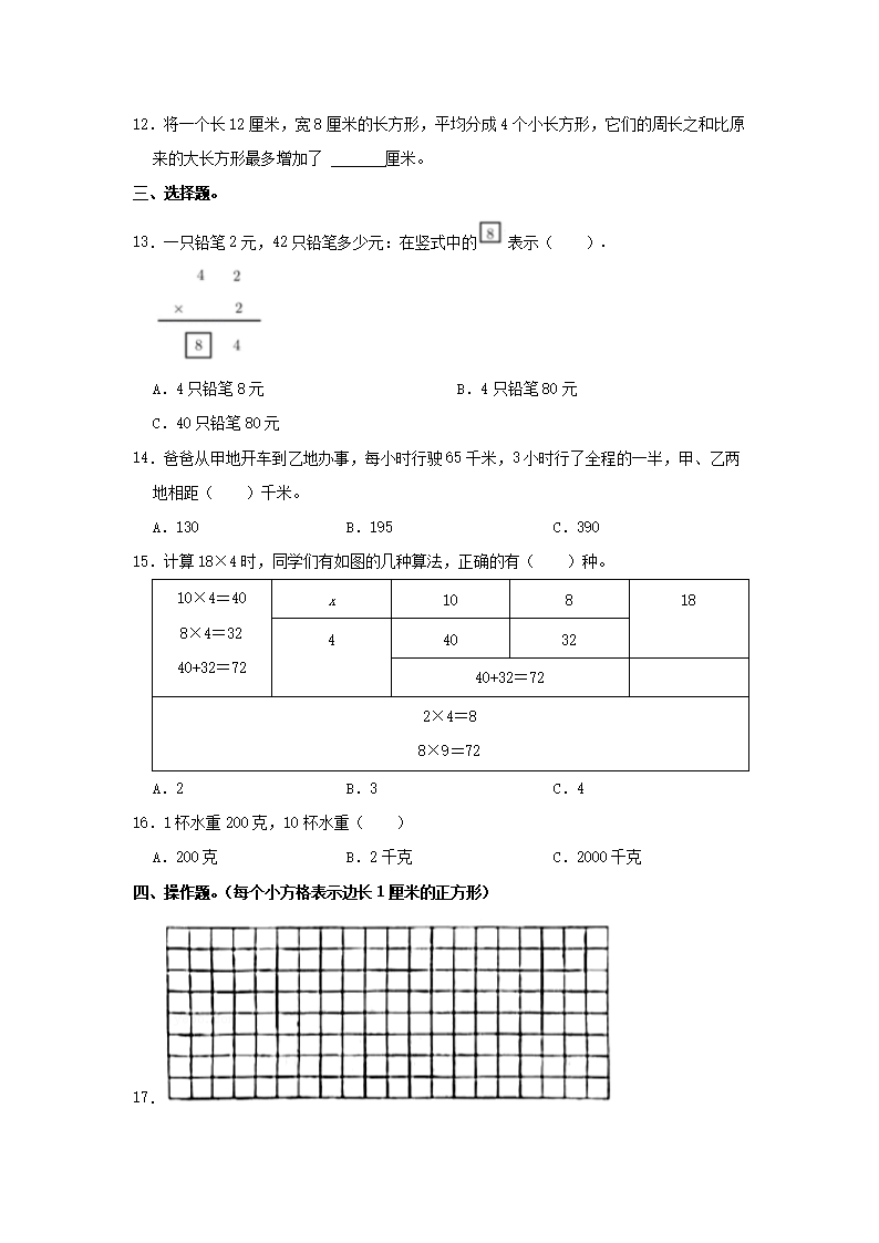 2022-2023学年江苏省徐州市睢宁县三年级上学期期中数学试卷及答(Word版)07-29