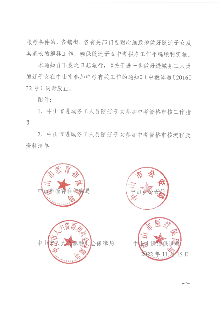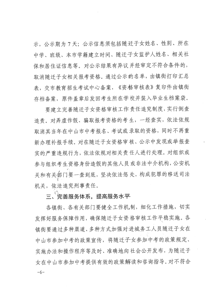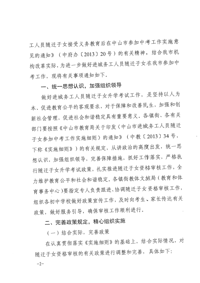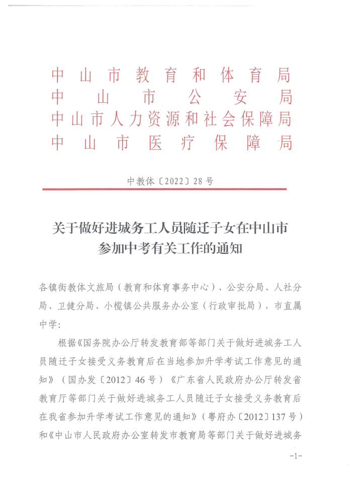 原文标题:关于做好进城务工人员随迁子女在中山市参加中考有关工作的通知