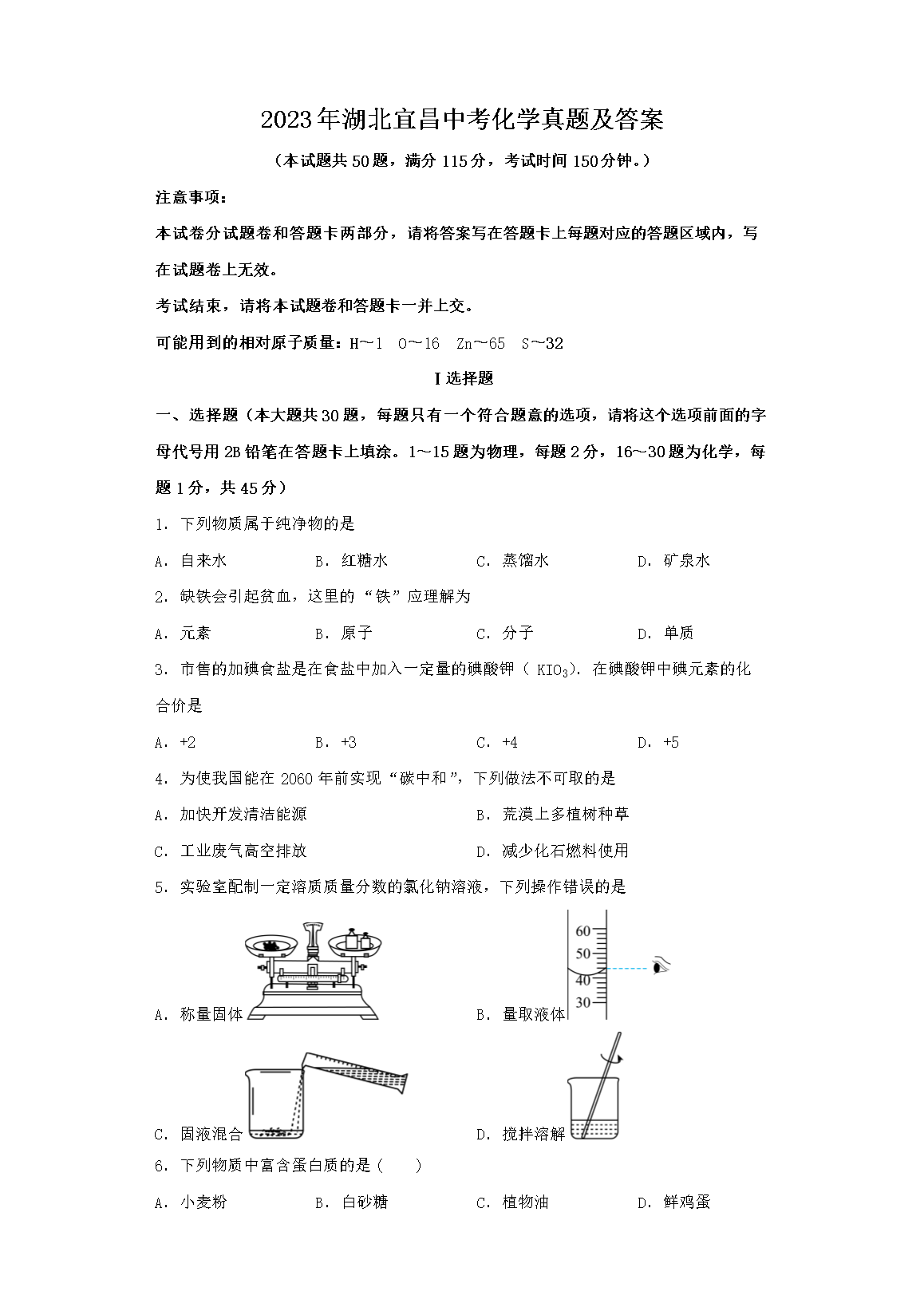 2023年湖北宜昌中考化学真题及答案(Word版)07-18