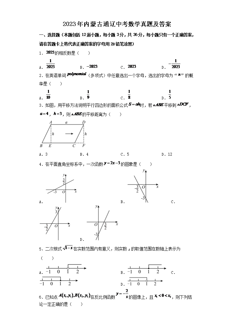 2023年内蒙古通辽中考数学真题及答案(Word版)07-05