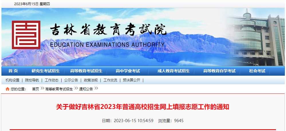 原文标题:关于做好吉林省2023年普通高校招生网上填报志愿工作的通知