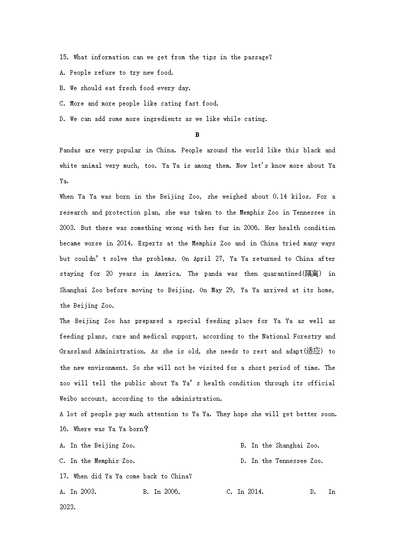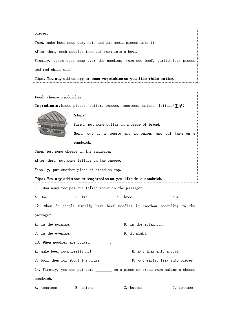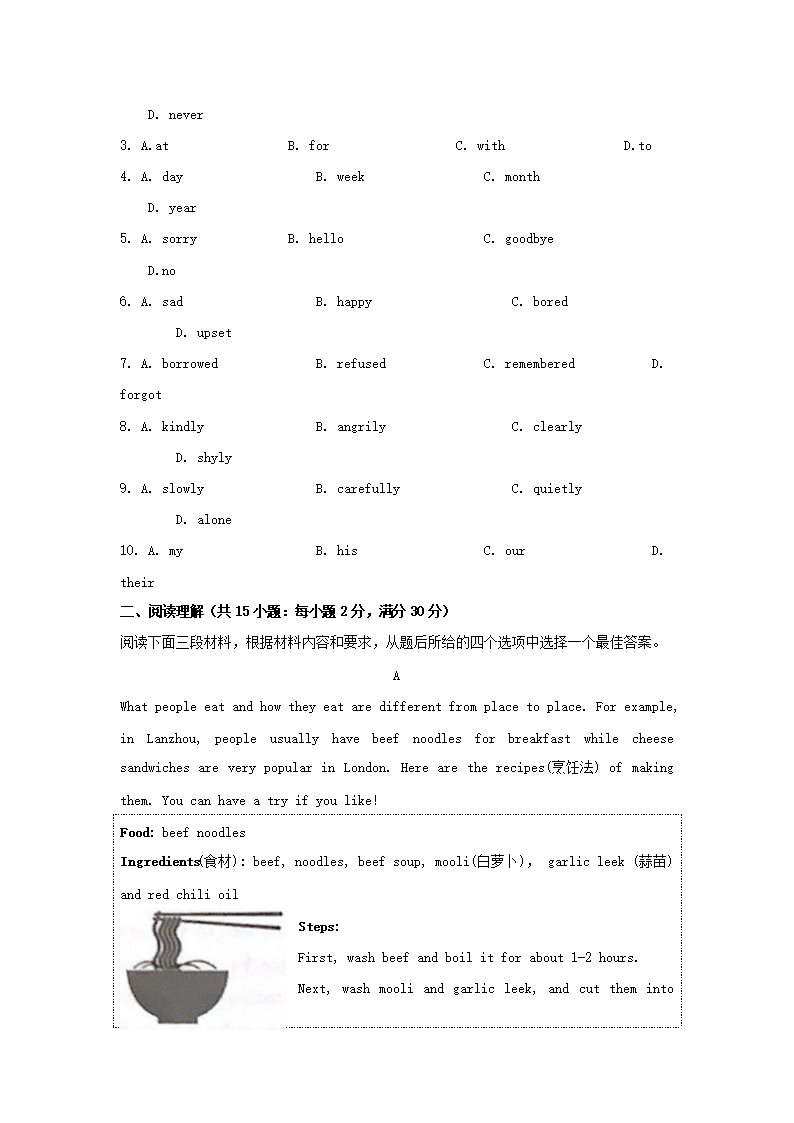 2023年甘肃兰州中考英语试题及答案(Word版)07-01