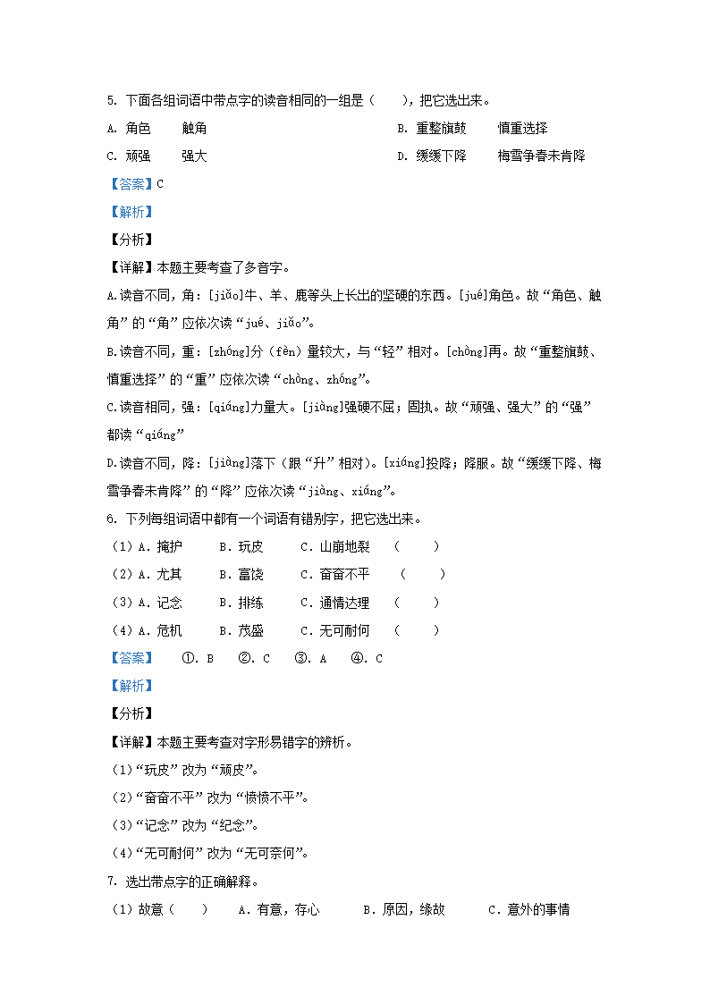 2021-2022学年北京顺义四年级上学期期末语文真题及答案(Word版)06-29