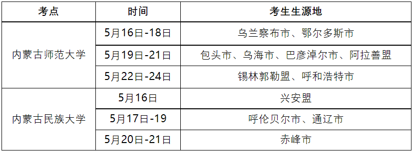2.内蒙古师范大学考点考生持《准考证》和身份证从内蒙古师范大学北门进入,适应场地、考试结束后仍由北门出校门。