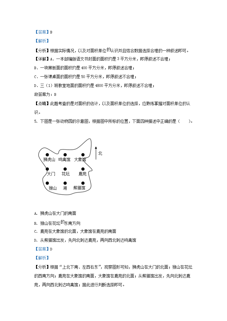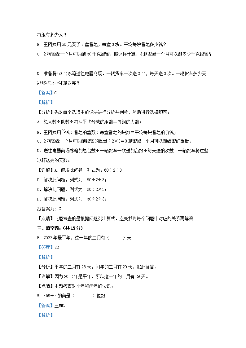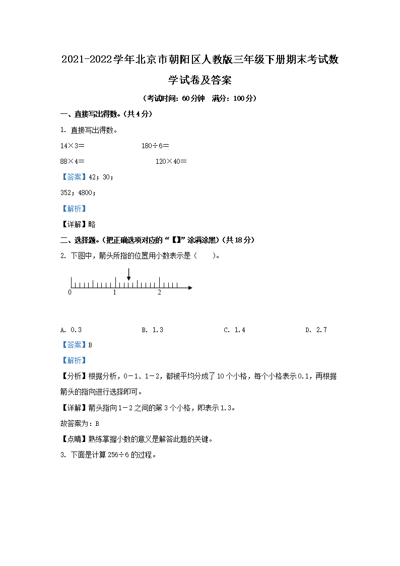2021-2022学年北京市朝阳区人教版三年级下册期末考试数学试卷及答案(Word版)06-28