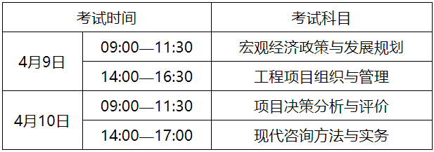 咨询工程师(投资)职业资格考试设《宏观经济政策与发展规划》(客观题)《工程项目组织与管理》(客观题)《项目决策分析与评价》(客观题)和《现代咨询方法与实务》(主观题)4个考试科目。
