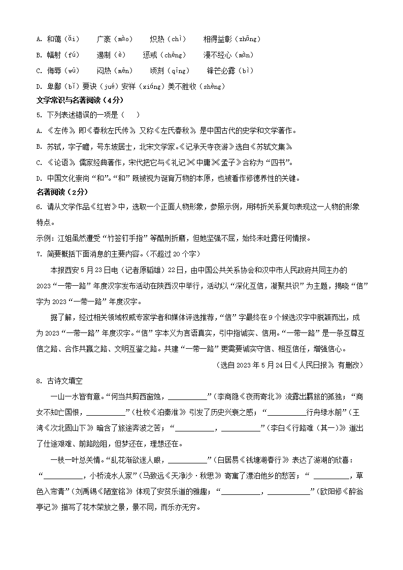 2023年辽宁营口中考语文真题及答案(Word版)07-14