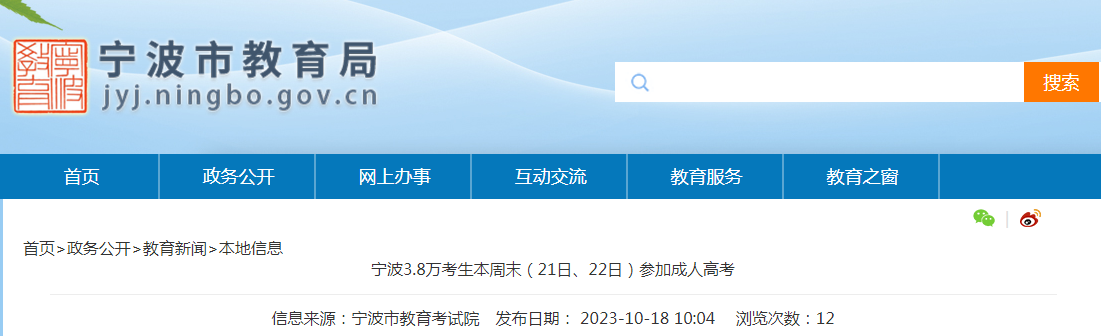 2023年浙江宁波3.8万考生参加成人高考(考试时间10月21日-22日)10-19