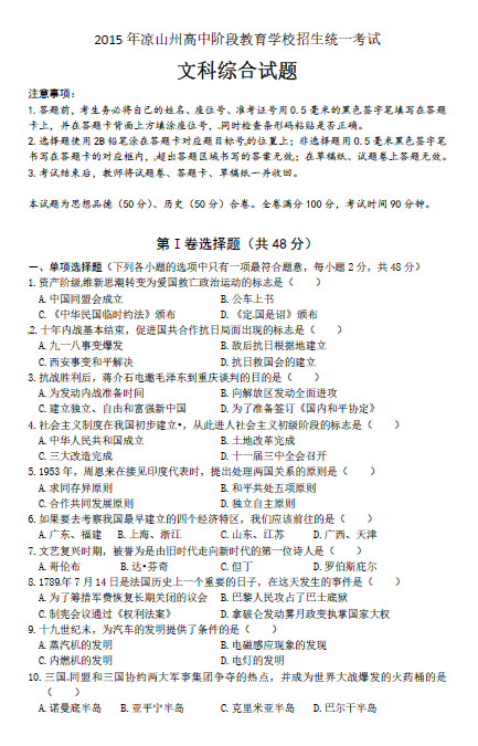 2016河南中考历史试题解析及答案|2016四川凉山中考历史试题已公布03-14