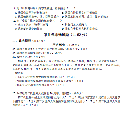 2017年河南商丘中考历史答案12-05