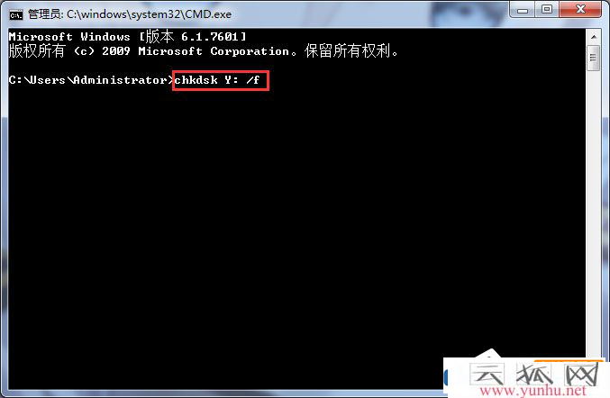 2、在出现的命令提示符窗口内输入“chkdsk X: /f”,然后点enter键。