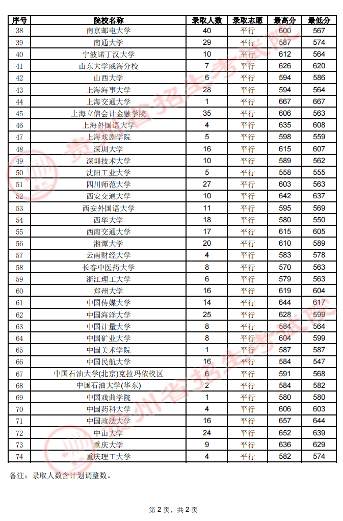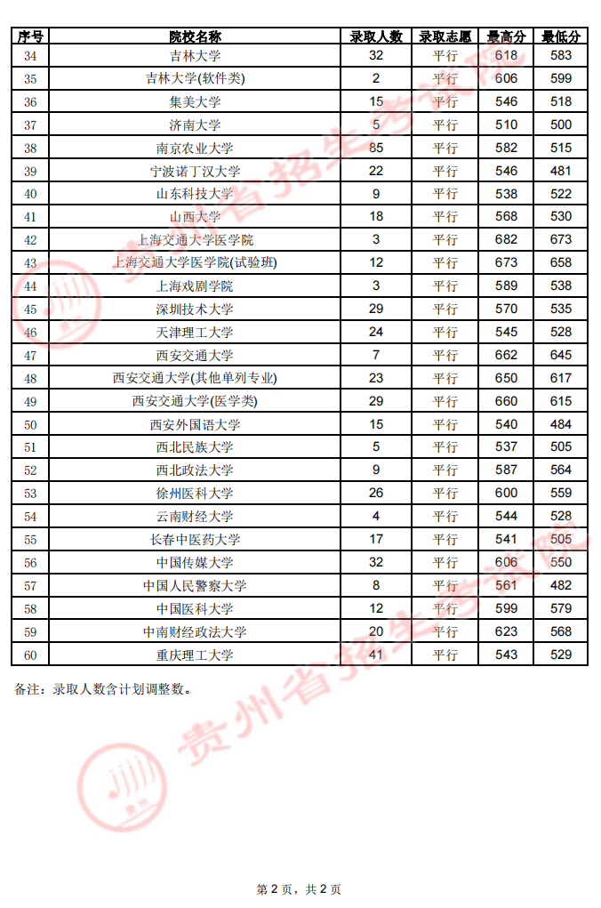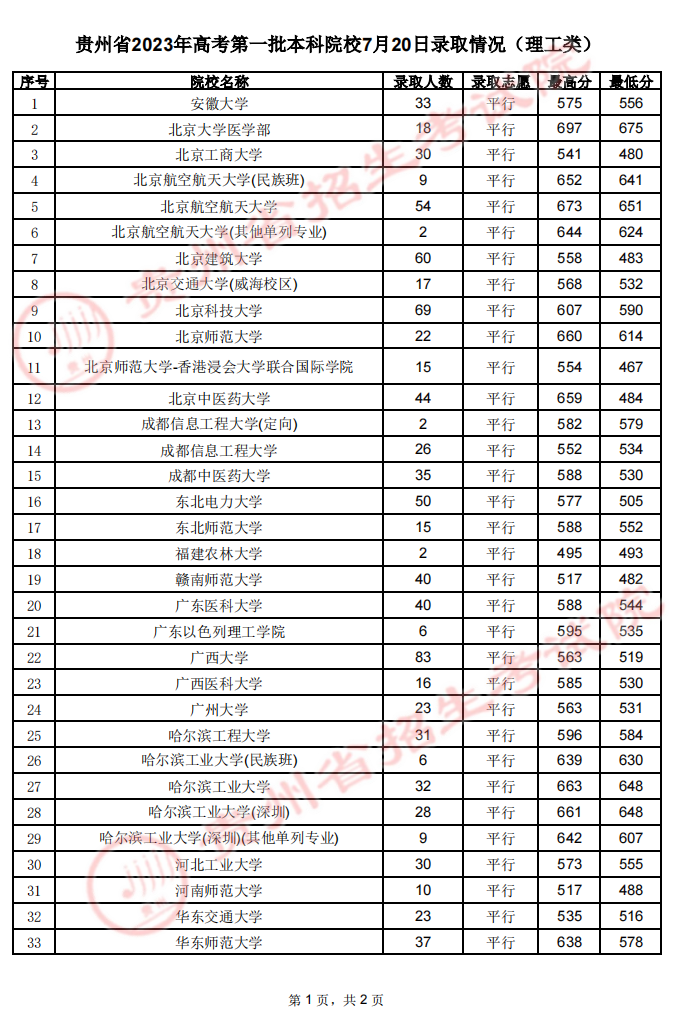 贵州省2023年高考第一批本科院校7月20日录取情况07-22