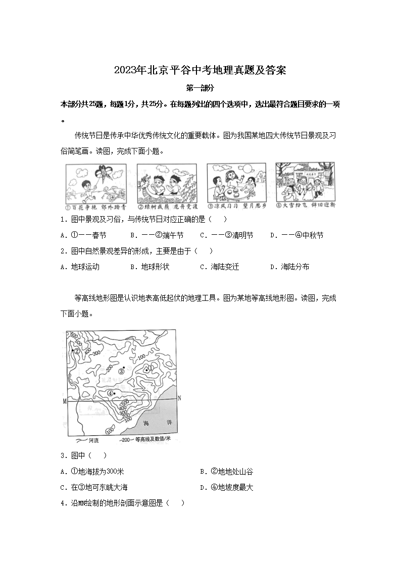 2023年北京平谷中考地理真题及答案(Word版)07-22