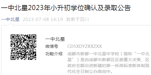 四川成都市新都一中北星中学校2023年小升初学位确认及录取公告07-12