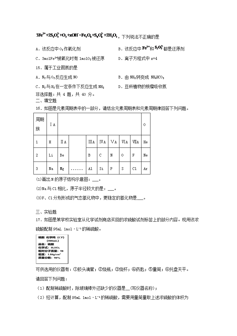 2023年山西普通高中学业水平考试化学试题及答案(Word版)07-28