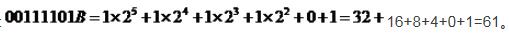 则二进制数00111101转换成十进制数为: