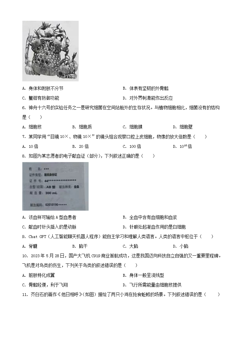 2023年广东揭阳中考生物真题及答案(Word版)06-29