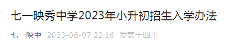 【#小升初# 导语】©文档大全网小升初频道从七一映中了解到,七一映秀中学2023年小升初招生入学办法已公布,详情如下: