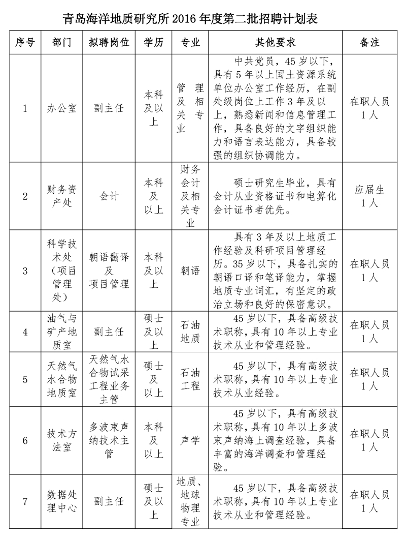 2016年山东青岛海洋地质研究所招聘公告(第二批)09-30