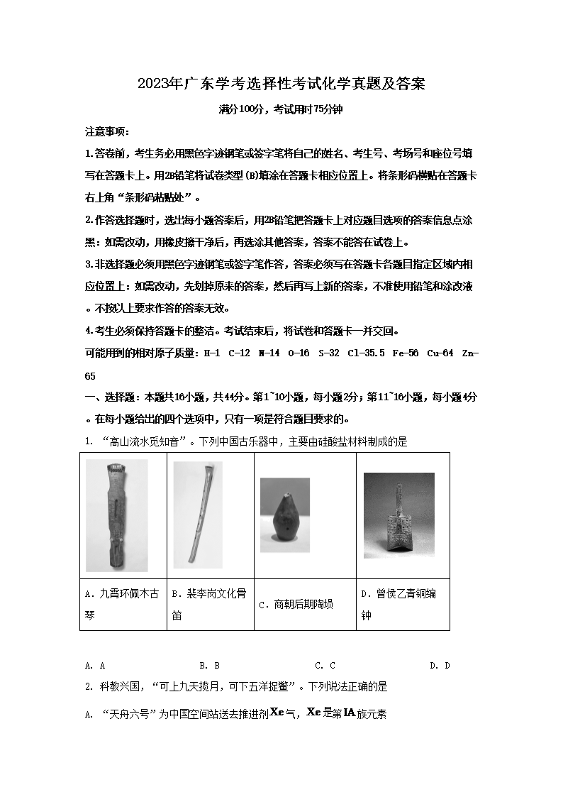 【文档预览】 文档大全网整理发布2023年广东学考选择性考试化学真题及答案(Word版),前五页预览如下: