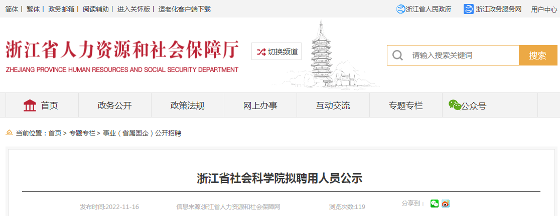 2022年浙江省社会科学院拟聘用人员公示11-17
