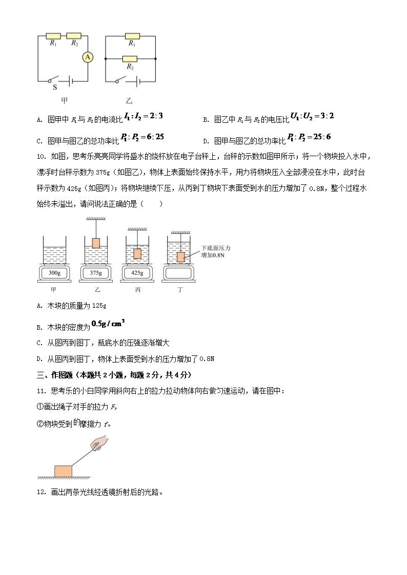 2023年广东深圳中考物理真题及答案(Word版)07-01