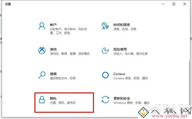 可能是因为Win10隐私设置的问题,我们点击“开始菜单”,点击“设置”图标按钮,点击“隐私”按钮,如下图所示。