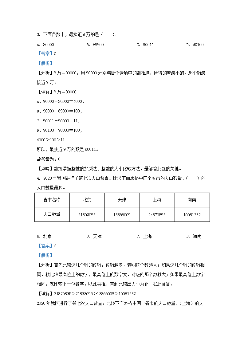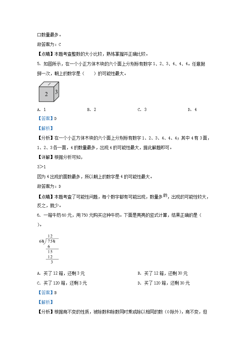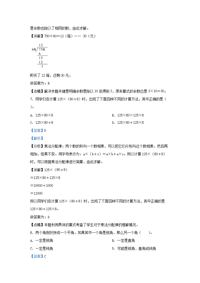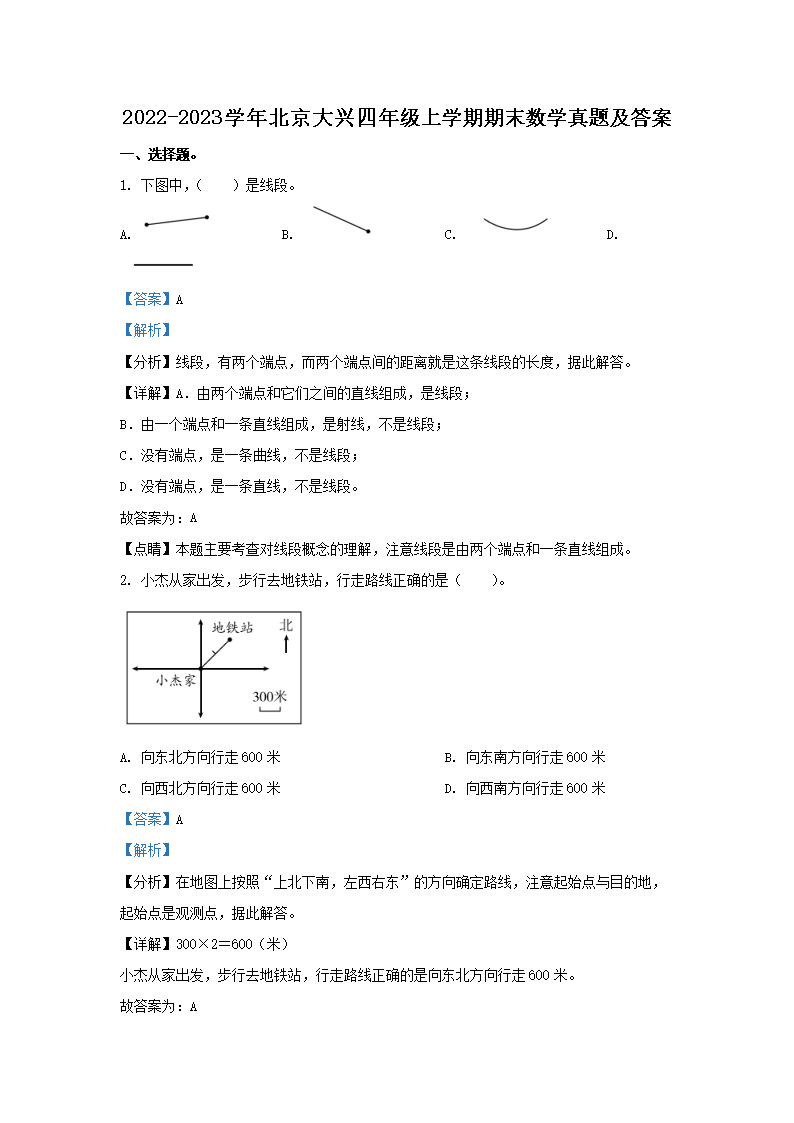 2022-2023学年北京大兴四年级上学期期末数学真题及答案(Word版)06-29