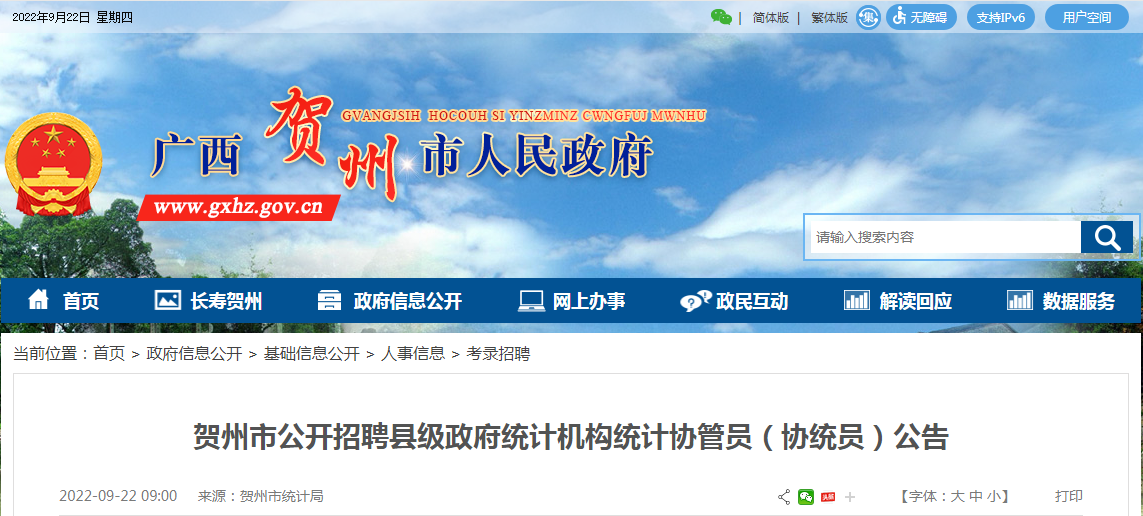 2022年广西贺州县级政府统计机构统计协管员(协统员)公开招聘公告【21人】09-23