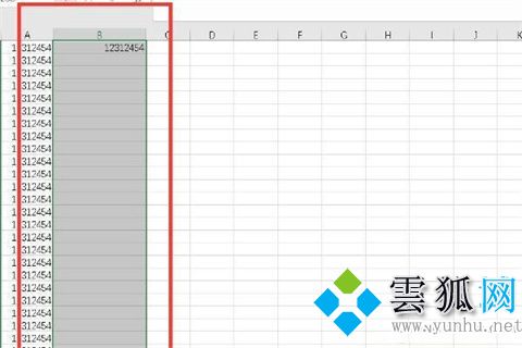 4、向右移动单元格到B列,在键盘上按下“CTRL+SHIFT+方向键上”,选中B列所有需要复制公式的单元格;