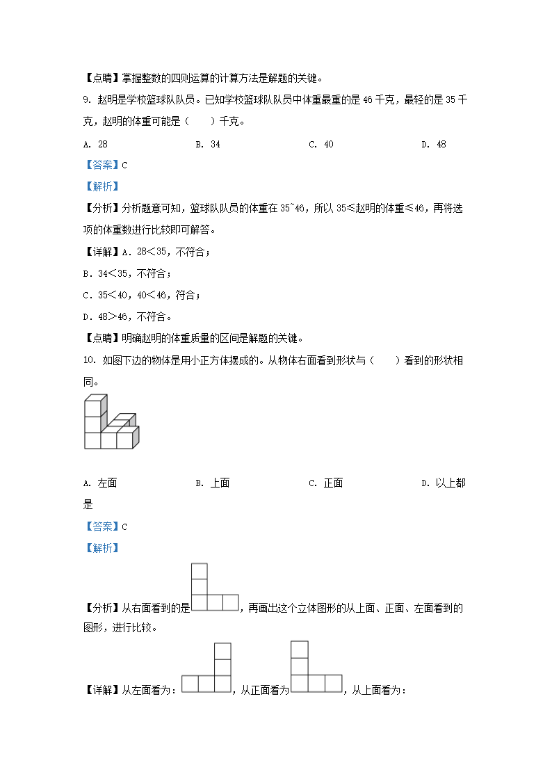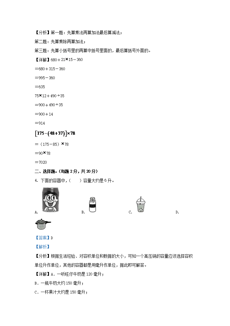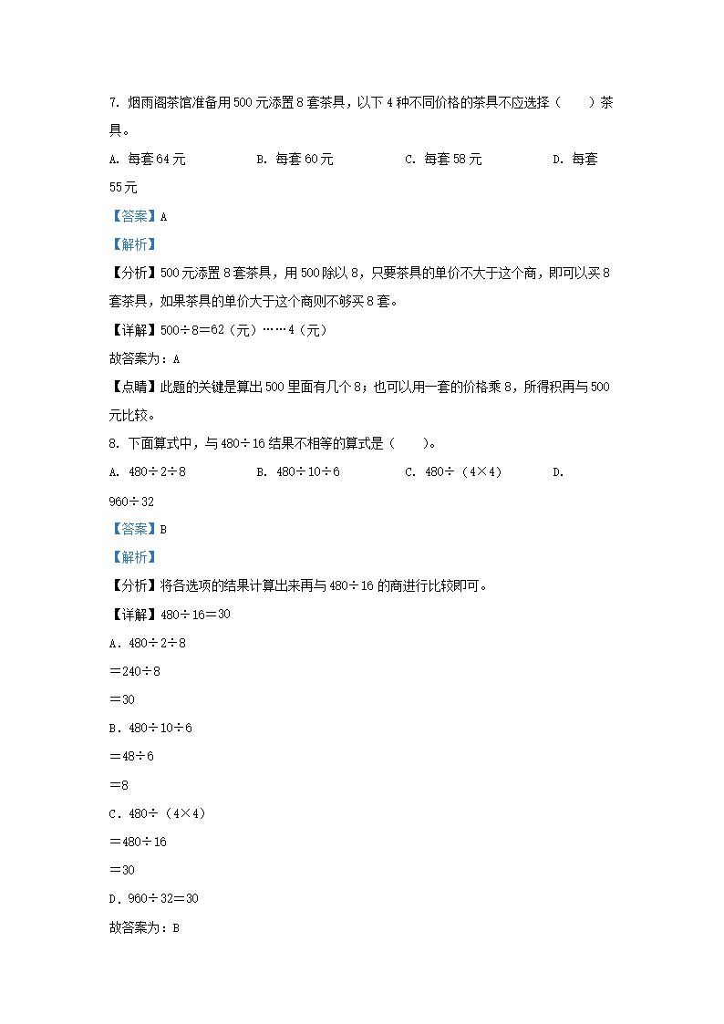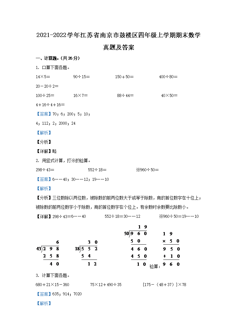 2021-2022学年江苏省南京市鼓楼区四年级上学期期末数学真题及答案(Word版)07-28