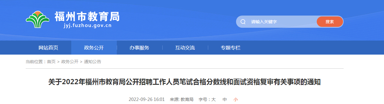 2022福建省福州市教育局公开招聘工作人员笔试合格分数线和面试资格复审有关事项的通知09-28