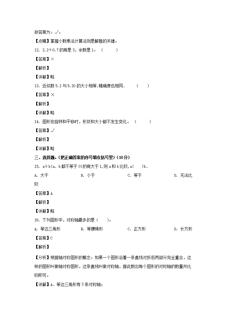 2022-2023学年江西南昌红河滩区五年级上册数学期末试卷及答案(Word版)09-13